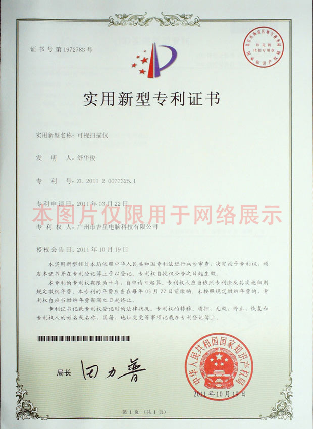 實用新型證書--可視掃描儀